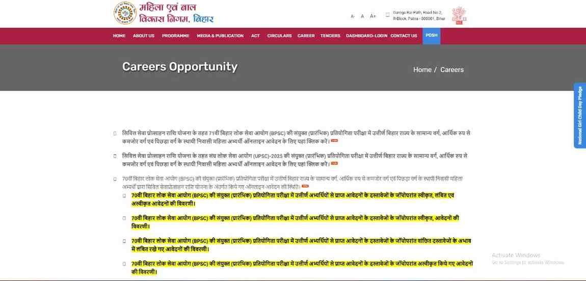 बिहार बल विकास सिविल योजना से लाभ।